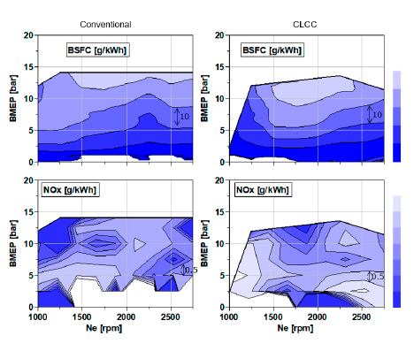 最終的に過渡WLTCモードを想定したシミュレーション(図2-11)および2.1L直列4気筒エンジンによる実機試験にて,広範な運転領域で燃費率,NOxを同時低減できており(図2-12),本取組みで掲げた燃焼コンセプトとそれに基づくCLCC制御の有効性を確認している.本講演は定常モードでの算出排ガス値を過渡モードに適用した評価であり,今後,過渡状態を模擬した検討に取り組む予定とのことであり,今後のモデルベースを駆使した適合手法の確立に期待する.(山田)