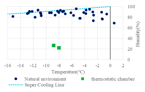 廃熱が少ないBEVは,暖房に供する電力負荷の大きさが課題となっており,省電力が期待できる自動車用ヒートポンプの実用化研究が進んでいる.角田ら(6-1)は,自動車用では家庭用室外機の様な除霜運転が難しいことから,着霜の難易に差がある環境での試験をもとに,着霜の挙動とこれが性能に与える影響を紹介した.試験は,図6-1に示す既存のカーエアコンを改造した暖房専用のヒートポンプを装着した乗用車を用いて,低温でも湿度の高い旭川のフィールドと湿度の低い恒温室(図6-2 参照)で,ソーク後に100分間の暖房運転を継続する方法で実施した.その結果から,能力に余裕があれば着霜したままの運転も可能であるが,効率低下による消費電力の増加の課題があることを示した.