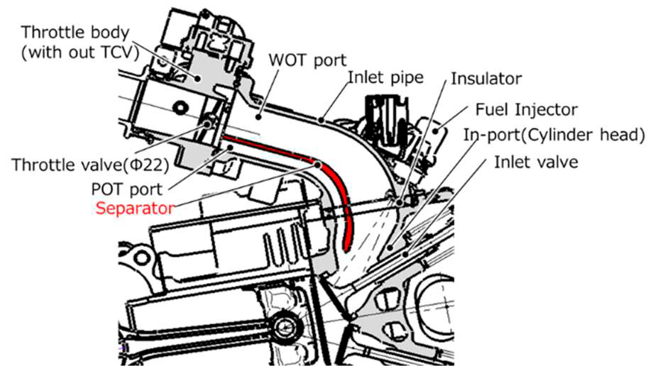 中村ら(1-1)は小型二輪車を対象とした、吸気ポート内の逆流現象を利用して、従来と異なり吸気通路の切り替え機構を用いずに部分負荷領域のみタンブルを強化する技術を構築し、静粛性と動力性を損なわずに燃費性能を高めることを可能とした。スロットル開度約15Deg.においてタンブル比は0.5→1.5と向上しBMEP250kPaにおける正味熱効率は-1.7%改善している。この技術のポイントは、トレーリングエッジ側の遅い流れがスロットルバルブ背面に発生した低圧部に引き寄せられて逆流する現象を有効に活用するために吸気ポート内に隔壁を設置することにある。性能向上に対するコスト増加は避けられない場合が多いが、緻密な観察結果から実現したい機能を最低限の手段で実現させる取り組みに、技術者として尊敬の念を感じる。