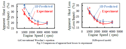 野村ら(1-3)はガソリンエンジンのMBDに向けて、筒内の燃焼現象に基づき、物理則ベースの1D CFD用筒内熱伝達モデルの構築し、それを実機の計算に応用し、燃費の予測精度を検証した。 3D CFDによる筒内現象解析結果を基に、乱流燃焼速度を用いた新しい熱伝達モデルを構築することにより、熱流束モデルの精度を向上させ、結果として従来モデルと比較して燃費予測誤差を約1/3に減少させ、概ね燃費予測モデルとしては必要な精度が得られるとした。エンジンの熱効率向上は引き続き重要な方策であり、本発表技術を含めMBDによる更なる開発効率と予測精度向上の実現により、改良技術の早期登場が強く期待される。