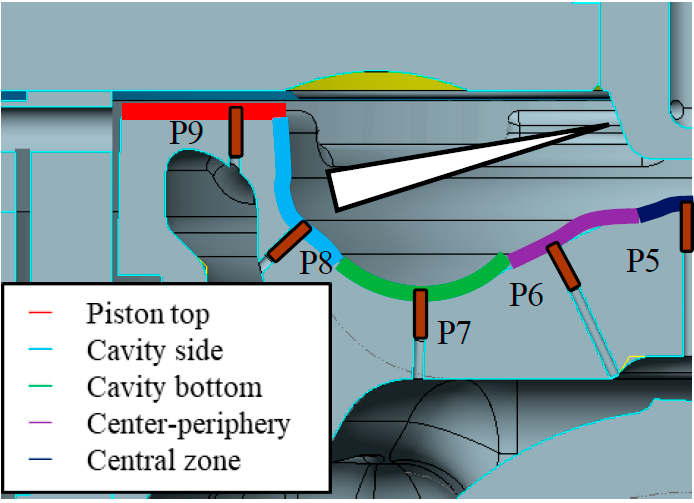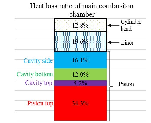 計測の結果、主な熱損失発生は図7-3および図7-4に示す通り副室からのジェットがピストンに衝突する領域とスキッシュエリアであることが分かった。本報告による計測結果は、今後のガスエンジンの熱効率向上のための熱損失低減策を考えていく上で参考となる。
