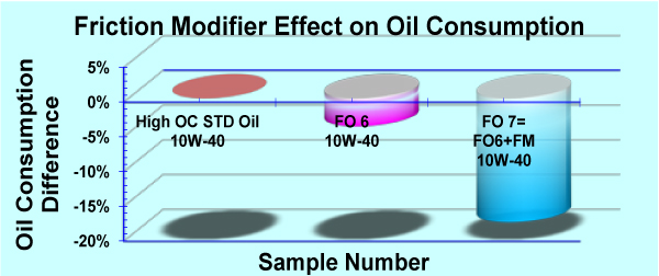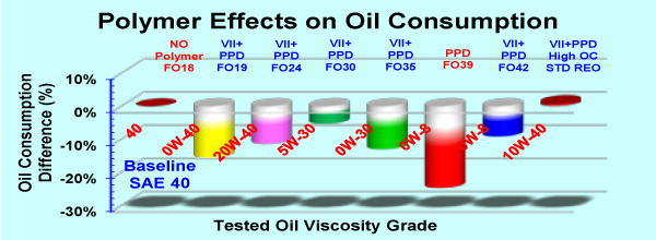 ベアケミカル&液体マシンテクノロジーの渡邊ら(1)の研究では、オイルの蒸発しやすさを表すNOACK値は必ずしもオイル消費と高い相関を示さないと報告されている。NOAKC値とオイル消費の関係についてはこれまでも多くの議論がなされてきたが、この研究はその論争に決着をつけるものと言っても良かろうと思う。本研究では膨大なオイル消費試験結果から、基油に添加される粘度指数向上剤、極圧添加剤といった高分子がオイル消費に影響を与えることが示されている。NOACK値は基油の蒸発特性によりほぼ値が決まるが、オイル消費は同じ基油を使用したオイルであっても例えば図1のように粘度指数向上剤の種類が異なれば値が異なってくることが示されており、NOACK値がオイル消費の指標とならないことが明らかにされている。図2にはComb型の粘度指数向上剤の分子量がオイル消費に及ぼす影響が紹介されているが、オイル消費低減のための最適な分子量が存在することが示されており大変興味深い。また図3のように摩擦調整剤もオイル消費に影響を及ぼし、これを添加することでオイル消費が大幅に減少していることが分かる。さらにNOACK試験ではオイルの蒸発特性が求められているが、実際のエンジンのオイル消費では蒸発よりも飛沫の形で消費されるオイルが多かったことも示されている。