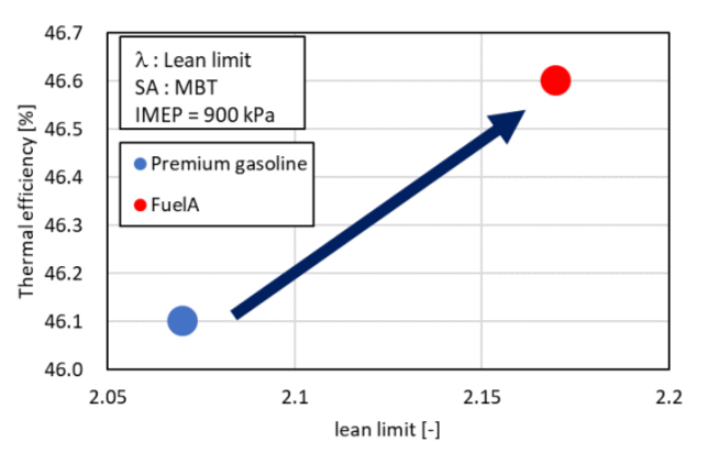 これらの燃料を用いたリーン燃焼の結果の紹介は省いたが、EGRと同じ改善傾向を示しており、リーン、EGR燃焼によらず熱効率を改善できる可能性を示したことは朗報である。
