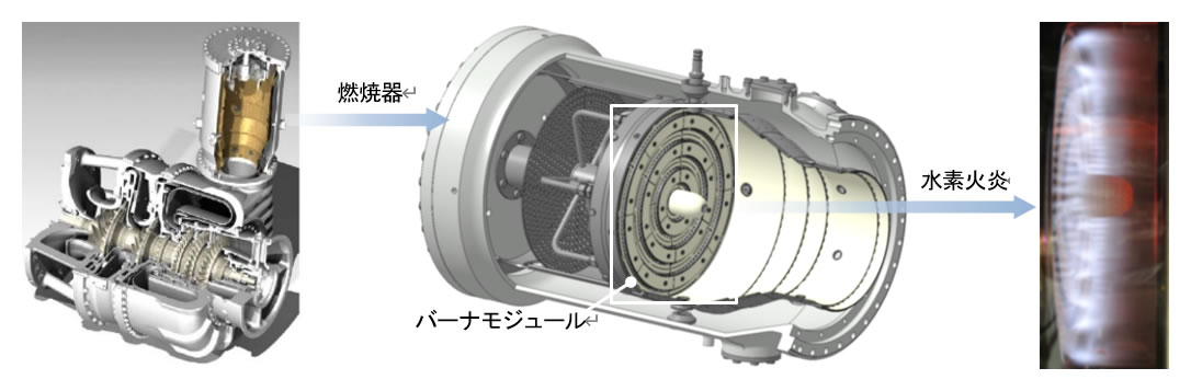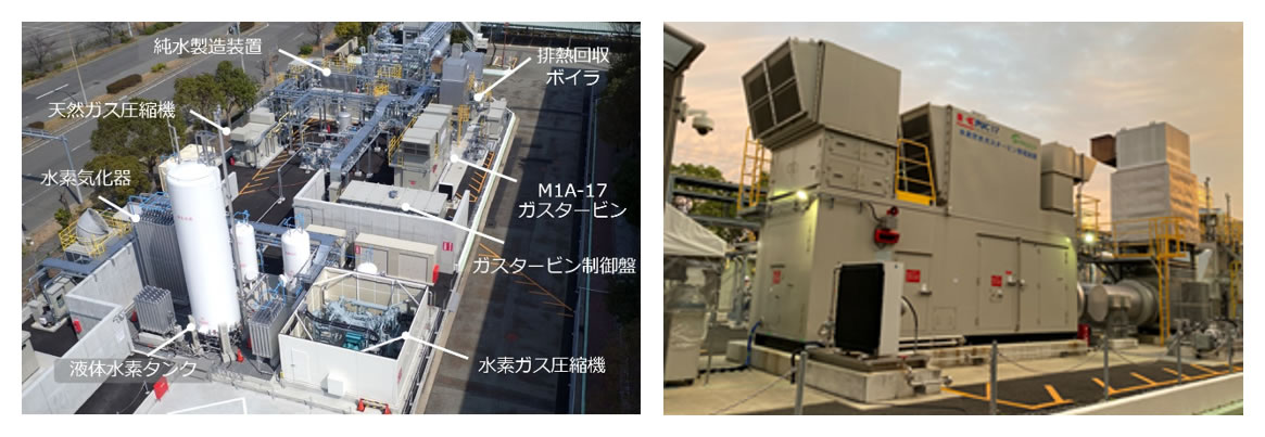 川崎重工業では、将来の水素社会の実現に向け、液体水素の供給、運搬、貯蔵、利用の技術開発を進めている。水素利用技術の中で、ガスタービンエンジンを用いた水素発電実証を進めている。ガスタービン燃焼器の様な高温・高圧に圧縮された空気の中で水素を連続燃焼させるには、安定燃焼と低NOx燃焼が重要となる。微細な水素火炎を形成する燃焼方式を採用した燃焼器を新たに開発し、兵庫県神戸市ポートアイランドに設置した水素コージェネレーション実証設備において、熱電供給実証を行った。2020年11月4日に水素専焼ドライ低NOx燃焼技術を用いた熱電供給に成功した。1700kW発電出力時のNOx値約55ppm(残存酸素16%、相対湿度60%換算値)を得た。