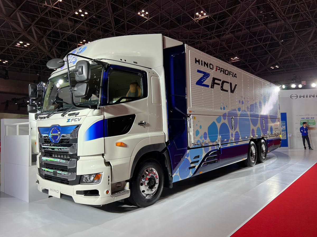 - 商用車メーカー各社のブースでは、カーボンニュートラル(CN)なエネルギーを使用したモビリティとして、大型車は水素FCV、小型車はバッテリEVを展示していた。CNな水素社会は到来するか。(渡邊)