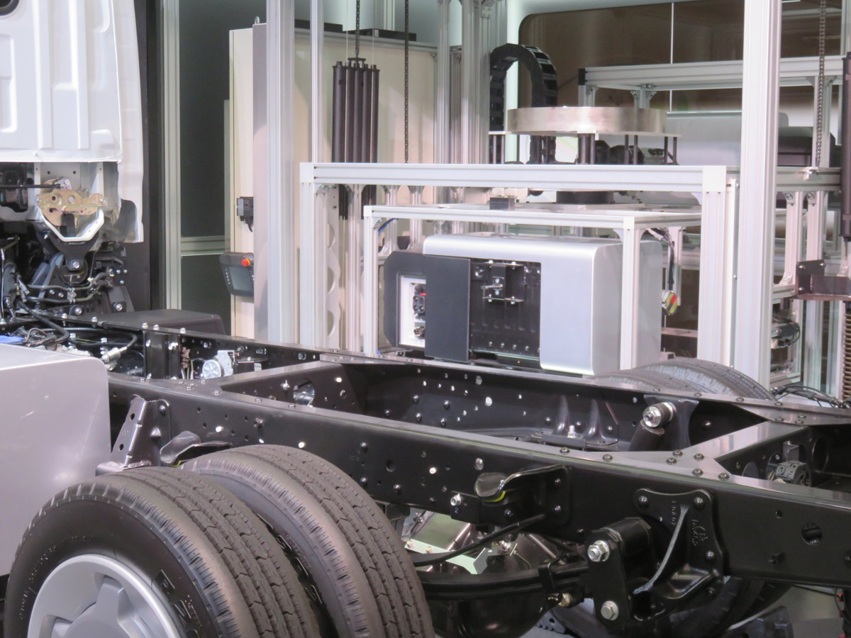 - いすゞ自動車では、交換式バッテリーEVトラックの展示において、機械を用いた交換作業のデモンストレーションを実施。交換式バッテリーは1器約200kgとのことで、おいそれとはいかないものの、見ている範囲では数分オーダーで完了していた。(鈴木)