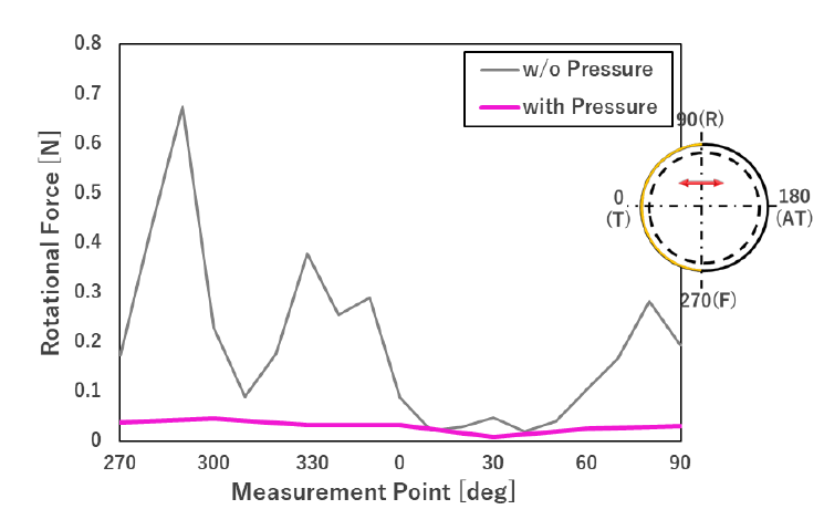 金元ら(1)は、エンジンのオイル消費の増加に関連するピストンリング回転現象に着目し、回転力の発生メカニズムの解明を目的とした研究を行っている。本報では、ピストンの上下、並進および傾き運動により生ずるピストンリング回転力に対し、ランド圧に相当する圧力が及ぼす影響を、単体試験機および実働エンジンを用いて調査した。その結果、ピストンの並進運動時に圧力が加わると、ピストン回転力が小さくなることを明らかにした。その原因として、圧力が加わることでリングと溝間の潤滑状態が流体潤滑的な状態から混合潤滑状態に移動し、摩擦係数が小さくなったためと推察している。