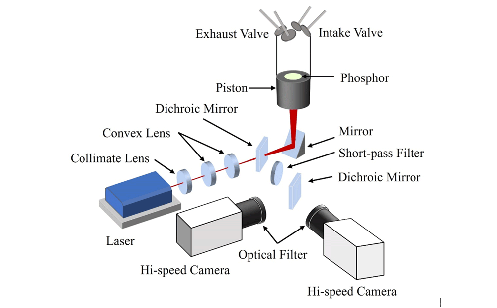 現代社会の中で広く使われている内燃機関は、温室効果ガス等による地球環境への影響を低減するために高い熱効率が求められており、高熱効率化のためには壁面からの冷却損失といった熱損失を低減する必要がある。壁面冷却損失の低減を実現するには、そもそもエンジン内部壁面の温度状況やそこからの熱損失の様子を把握することが必要不可欠であり、そこで様々な温度計測法が提案・試行されている。燐光体を利用した二次元温度分布計測法もその一つであるが(1)-(3)、エンジン内部の熱輸送現象と同等な速度での高速時系列計測は実現していない。そこで本研究では、アップコンバージョン型燐光体を利用することで、可視化エンジンのピストン表面における高速二次元温度分布計測を実現し、さらにその時系列温度分布から壁面熱流束分布を算出するにまで至ることが出来たため、本記事にてその内容を紹介する。