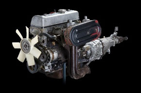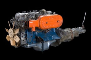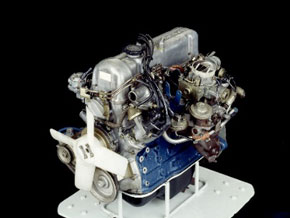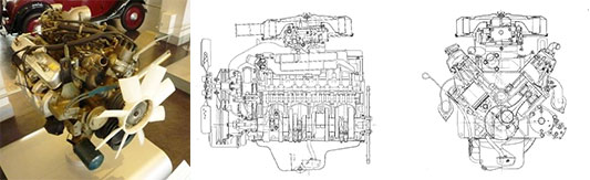 オースチンの技術を吸収し、独自の工夫を織り込んだエンジン。エンジンの中心線、センターラインから、日産が独自で計画を立てて作ったブラインド・ニューエンジンである。