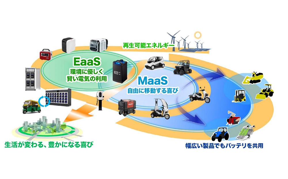 バッテリを容易に交換可能とすることで、充電する場所を家庭や職場内の充電器もしくは市中設置型の充電器を活用することができ、市場および事業のニーズに合わせて方法を選択出来るようになることと、充電済のバッテリに交換することで、連続的な利用による長航続距離と、短時間給電を可能としている。