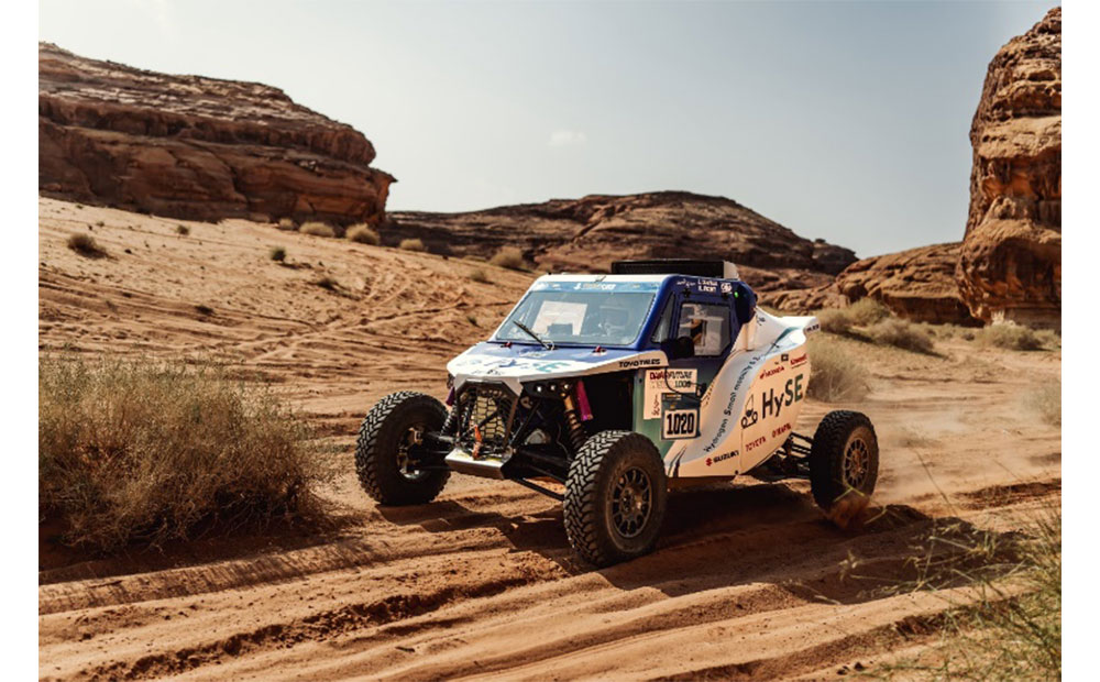 ダカールラリー参加HySEは2024年1月5日から1月19日まで開催された「ダカール2024」において、水素や電気、バイオフューエルとのハイブリッドなどカーボンニュートラルに向けた次世代パワートレインの技術開発を促す目的で設定された新カテゴリー“Mission 1000”に「HySE―X1」(図2)にて参加した。世界一過酷なモータースポーツと言われる厳しい環境条件下で、研究中の水素燃料エンジンを搭載した「HySE―X1」を実走行させることで、加速中の異常燃焼や燃費、耐久性など、台上試験では得られない課題を抽出することが目的である。想定を超える設定ルートの89%を走行することができ、走行条件違いで多くのデータを取得することができた。今回は、各ステージを走りきるための余裕を持った水素量が搭載できず、低い速度域を多用した燃費走行に徹する状況も多かったが、タンクの追加とエンジンの燃費改善を行うことで、更なる高い速度域でのデータ取得を狙い2025年も参加予定である。