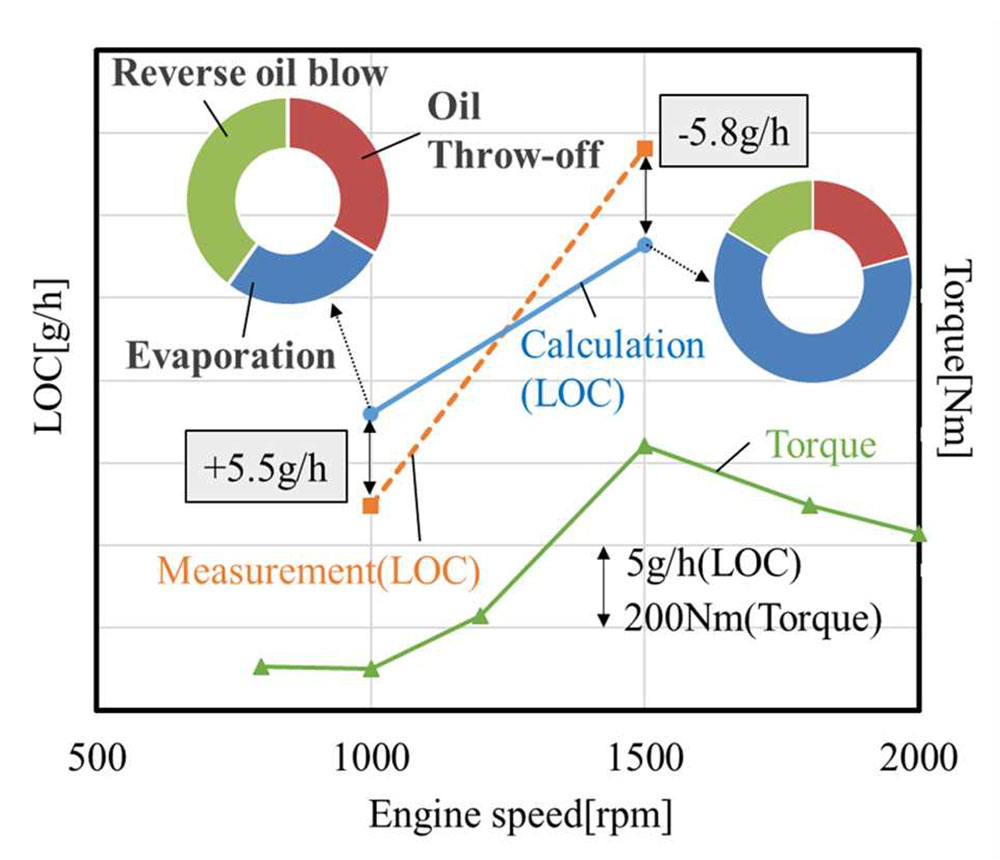 千葉ら(2)はピストンリングの性能予測に特化したMBDツールとしてLOC(潤滑油消費)を対象とし、リング挙動・ブローバイ計算モデル・CFDによる油量計算を定式化し、短時間でオイル消費を予測できる計算モデル(ID-LOC)を提案した。可視化実験等で得られた油膜分布を実験係数として計算時間の短縮なども考慮した。この結果、ディーゼルエンジンの場合、実測値と計算結果の比較では誤差は最大で-5.8g/hから+5.5g/hとなり、従来のLOC測定法と比較して十分な予測精度を有していることが示された。また、LOC予測計算時間では、CFDモデルでは504hr掛かったが、提案のMBDツールでは0.13hrと大幅に低減している。今後は多くの内燃機関のリングパック使用への適合を進め、有用な設計ツールとなることを期待したい。