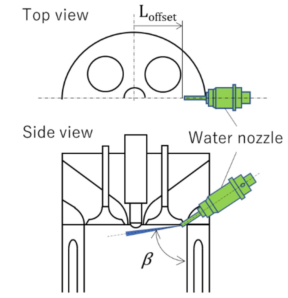 トヨタ中央研究所稲垣ら(1)は、これまで現実的な方策とは見なされてこなかった水添加の高度化を試みた。すなわち水をシリンダ内に直接噴射して、要所に水が配置されるような成層化を行うことでsoot等の悪化や水の消費量を抑制しつつ最大限のNOx低減を図ろうというものである。本報は第2報ということでIMEP1.2MPaの高負荷を対象に検討を行っている。