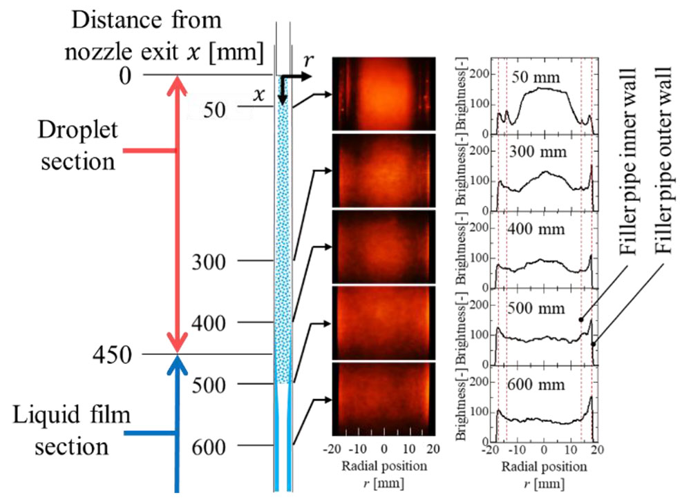 横山ら(1)はガソリン給油時に発生するガソリン蒸気について、ガソリンと共に燃料タンクに流入する空気「巻き込み空気」が重要な役割を果たしているとして、空気の巻き込みメカニズムを給油模擬実験により調査した。本研究の画期的な点は、ガソリンではなく蒸気圧を上げた水、すなわち、「お湯」で実験をしていることである。水温は最大で60℃、蒸気圧は20kPaとガソリンには及ばないが、安全な環境でフィラーパイプを微粒化しながら通過する「水」と巻き込み空気による、混相流について種々の計測を実施した。液滴による圧力抵抗や、パイプ内における液膜の形成とその摩擦抵抗のモデル化により、巻き込み空気量とタンク内圧の関係を説明している。