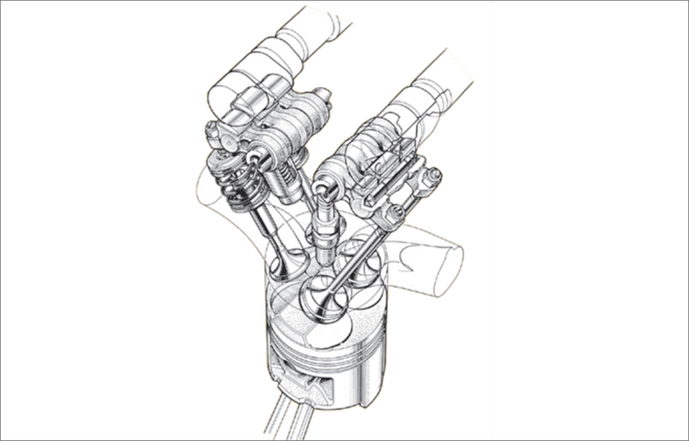 1985年11月に発売されたホンダのフラグシップモデル「レジェンド」(図1)には、同社初となる量産V型6気筒エンジンが新規開発され搭載された。このエンジンは、筆者が入社して最初に開発担当したエンジンである。エンジンの幅と高さのバランスを最適化するため90度のVバンク角を採用し、クランクピンには30度のオフセットを設けることで等間隔燃焼を実現している。搭載されたエンジンは、排気量2.0LのC20A型および2.5LのC25A型の2種類であり、いずれも1本のカムシャフトで吸排気4バルブを駆動するSOHCヘッドを採用している。インテークマニホールドをVバンク間にレイアウトすることでエンジン全体のコンパクト化を図り、シリンダヘッドの形状は横から見ると「おむすび」に似ていることから「おむすびヘッド」と呼ばれていた。動弁系にはSOHC1カム4バルブのスイングアーム方式を採用し、排気側はプッシュロッド(図2)でロッカアームを駆動するという独創的なアイデアが盛り込まれている。また、高性能を追求した市販乗用車として、静粛性とメンテナンスフリー性を両立するため、ハイドロリック・ラッシュ・アジャスタ(油圧タペット)が採用された。さらに2.0Lエンジンには、低速トルク向上を目的として、超ロングでカタツムリのような形状を持つ可変管長インテークマニホールドが採用されるなど、数多くの新技術が投入されていた。その後、1987年に2.7Lへの排気量拡大、1988年にはガソリン量産車として初めて可変ベーン機構ターボを採用した2.0Lウイングターボエンジンが登場した。さらに1990年にはDOHC VTEC化と3.0Lへの排気量アップが行われ、後述するNSXへと技術が継承されている。