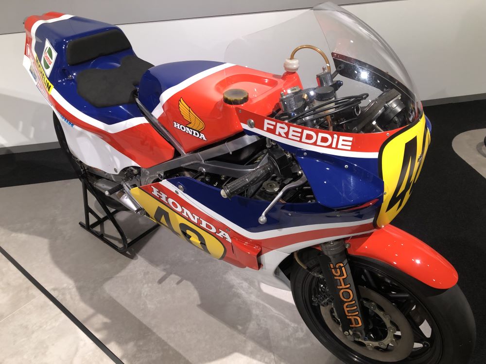 私が二輪レースの取材にかかわり始めたのが1983年。あのスペンサーがチャンピオンを取ったことを海の向こうのニュースとして扱った。だからNR500の19000回転と長円ピストンが生み出すエキゾーストノートに一度も接していない。ホンダコレクションホールの売りは「動態保存」であるという。できたばかりのこの場で真っ先に聞いたのが「いつNR500の走りが見られますか」だった。しかし帰ってきた答えは悲しいものだった。