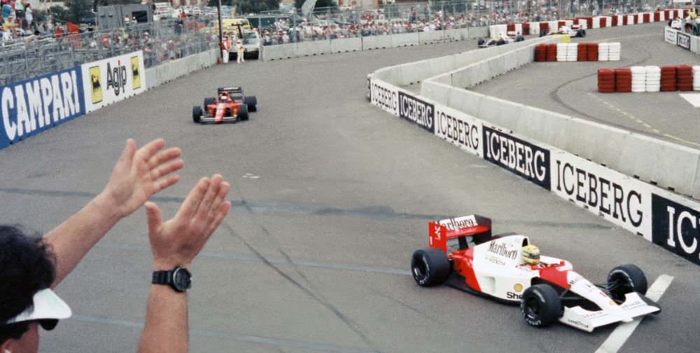 最近、昔の35mmフィルムを専門業者に依頼してデジタル化しました。その中に、1991年に米国フェニックスで開催されたF1グランプリの写真があったため、ここに紹介します。先頭を走るのは、マクラーレン・ホンダに乗る“音速の貴公子”アイルトン・セナ。その後方を追うのは、フェラーリの“プロフェッサー”アラン・プロストです。当時のレース展開は詳細には覚えていませんが、セナが終始トップを守り、圧倒的な勝利だったと記憶しています(調べたところ、2位に16秒差をつけていました)。写真を見ると、観客席とコースの距離が非常に近いこと、そしてコース幅の狭さに改めて驚かされます。