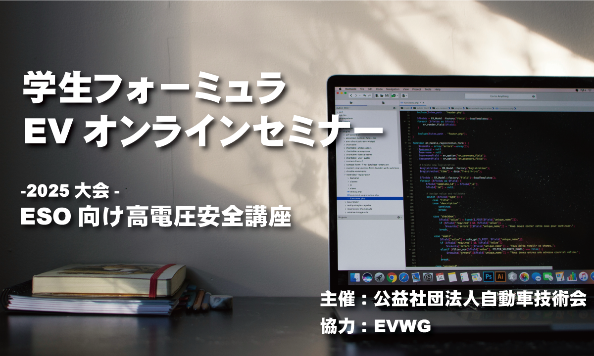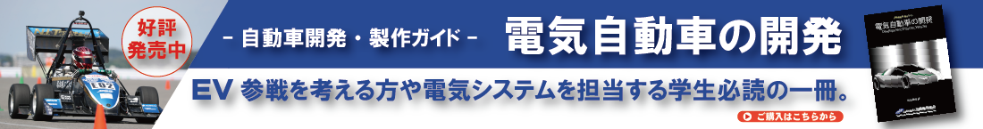 学生フォーミュラEVオンラインセミナーでは、EVクラスにエントリーする学生がレギュレーションに基づいた車両設計・製作するための手助けになることを目的として企画いたしました。他にも電気自動車を製作するにあたり守らなければいけない安全教養を学ぶためのESO*¹高電圧安全講座や、ESF*²に明確に記すための書き方講座などもオンラインで開催しております。次回の学生フォーミュラ大会にEVクラスで参戦しようと考えている方、チームの中で電気システムを担当するが何から学べばいいか分からない方はぜひ参考にしてみてください。オンライン講義をご覧になって興味を持たれた方は、「電気自動車の開発」も参考文献としてお買い求めください。