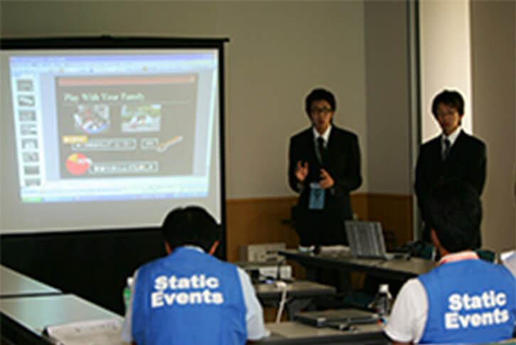 開発車両の設計が「アマチュアの週末レース市場の要求に合致しており、製造販売で利益を出せることを製造メーカーの役員に納得させる」という仮想シチュエーションで行います。学生のプレゼンテーション能力を評価します。