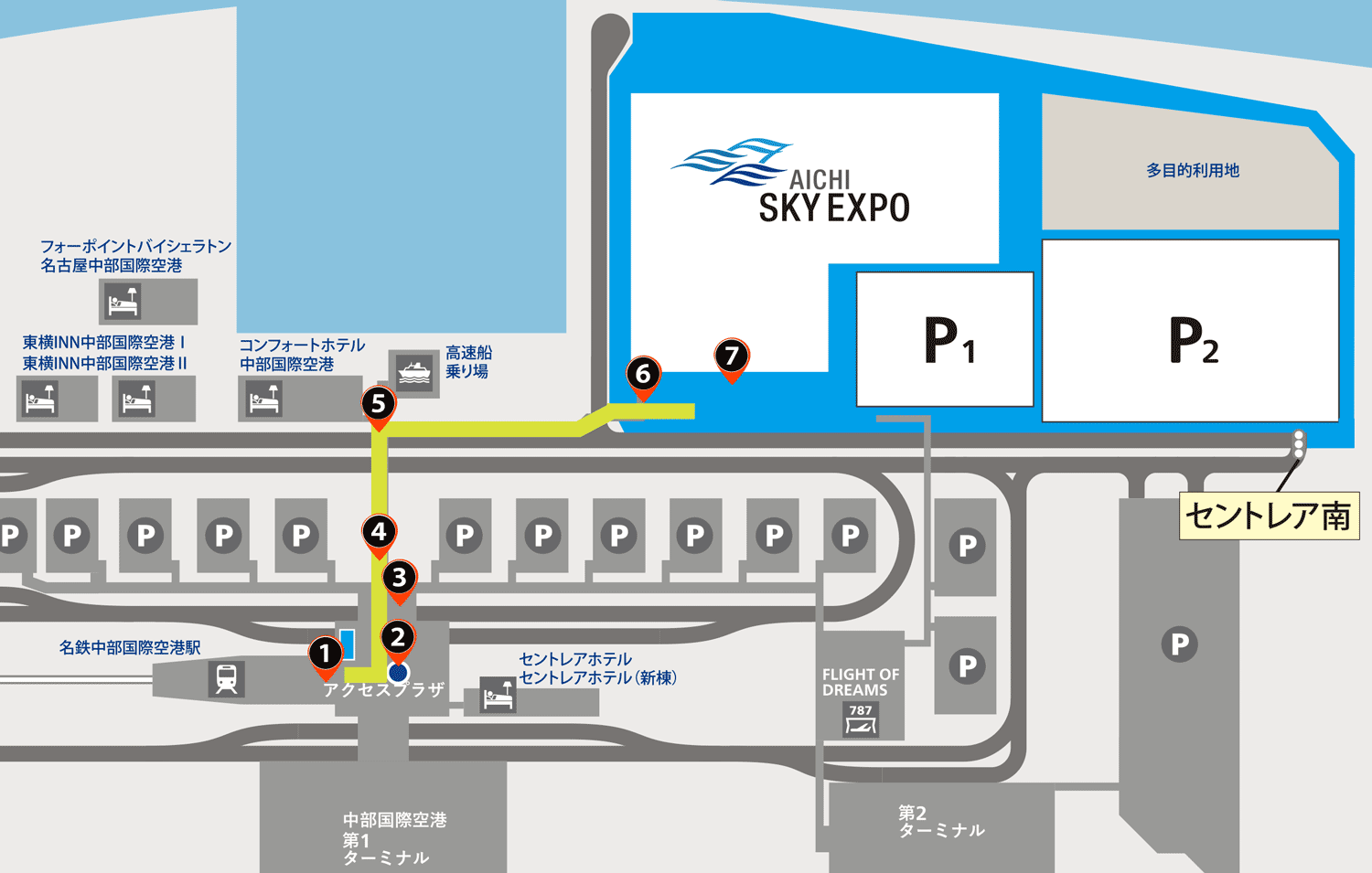 会場アクセスを掲載しました(7/25 駐車場の情報を追加) 2025.07.21 中部国際空港駅からお越しの方/駐車場をご利用の方 中部国際空港駅からAichi Sky Expoまでの経路です。駅から建物入口まで徒歩5分ほどかかりますので、余裕をもってお越しください 印刷版MAPはこちら 経路1ー3 経路4ー6 経路7ー9 <駐車場のご案内> お車でお越しの場合は、Aichi Sky Expo の駐車場(有料)、または近隣の一般駐車場をご利用ください。Aichi Sky Expo 専用駐車場のご利用料金は、普通車800円/日です。 参考:https://www.aichiskyexpo.com/parking/ 一覧へ戻る 前のお知らせ 事前予約のない方も参加可能です! 次のお知らせ 教室型プログラム事前申込の皆様へ(抽選結果をメールにて通知いたしました。)