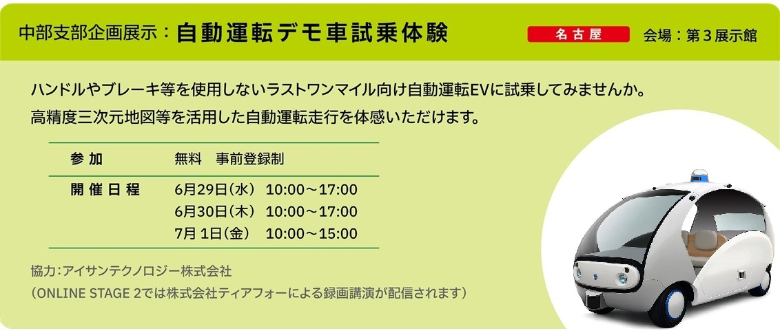 現地会場では自動運転デモ車による試乗体験を予定しております。