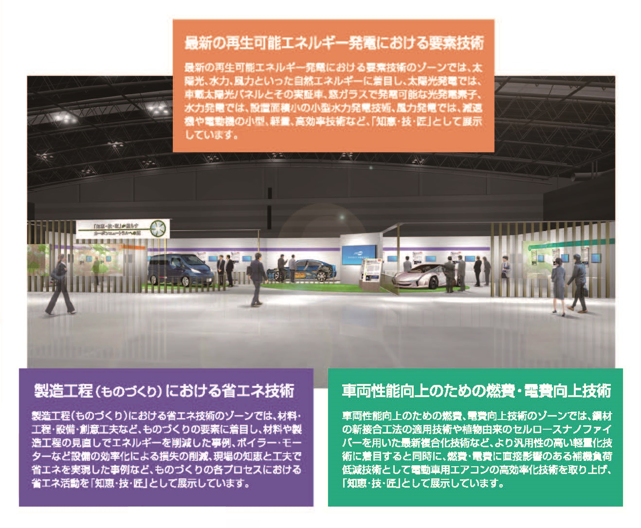 今年のテーマは、「熱い思いで切り拓こう! カーボンニュートラルへの道」としました。地球規模での課題であるカーボンニュートラルに対し、自動車技術はどのように対応していけばいいのか、自動車技術以外にも目を向け考えていく展示を目指しました。横浜展示のテーマは、「新たな脱炭素技術が照らすカーボンニュートラルへの道」とし、日本の電源構成を出発点に、再生可能エネルギー技術に着目し、展示を構成したのに対し、名古屋展示では、「「知恵・技・匠」が照らすカーボンニュートラルへの道」をテーマとし、カーボンニュートラルをいろいろな角度から目指す技術を取り上げ、「知恵・技・匠」といった要素技術にも目を向けた展示といたしました。