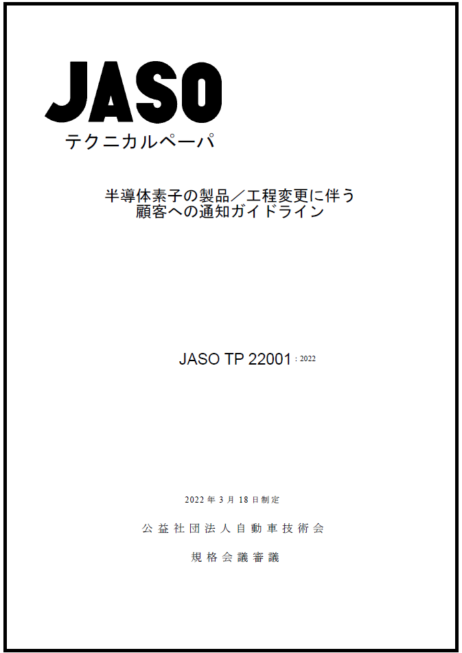 JASOテクニカルペーパ 「半導体素子の部品/工程変更に伴う顧客への通知ガイドライン」を発行