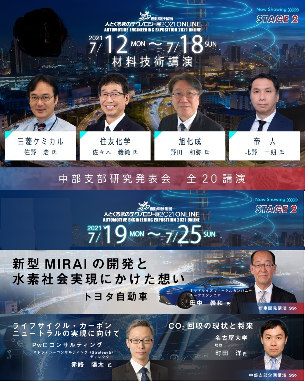 STAGE2では、新車開発講演、材料技術講演、中部支部研究発表会、中部支部企画講演をオンデマンド配信しました。