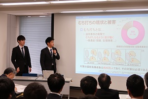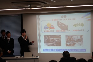 各チームから優れたアイディアが提示され接戦となりましたが、事故分析に裏付けされた課題抽出のアプローチ、プレゼンテーションの分かり易さと質疑応答の正確さ、またデモモデルの完成度の高さが評価され日本大学工学部バイオメカニクス研究室(日本大学)が最優秀賞に選ばれました。