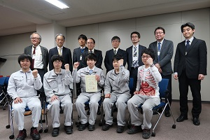 日本大学工学部バイオメカニクス研究室のメンバーと審査員の記念撮影