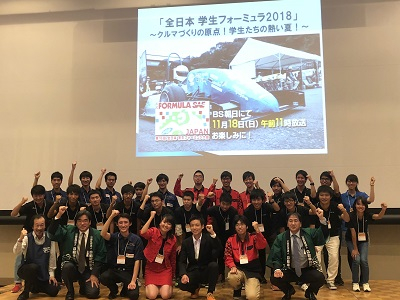 台風21号の影響で表彰式が中止となった為、秋季大会パーティ(技術者交流会)に大阪大学・京都工芸繊維大学・名古屋大学・名城大学を招き表彰しました。(大学名は、総合成績順)