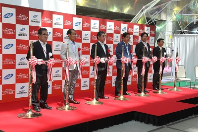 1日目の9:40より、オープニングセレモニーを行いました。来賓として愛知県副知事 森岡仙太様、 名古屋市長 河村たかし様、 中部経済産業局長 富吉賢一様(※「吉」は土に口)からご祝辞を賜りました。テープカットは、来賓と坂本秀行会長、西井清治中部支部長、豊増俊一展示会企画会議議長が行いました。