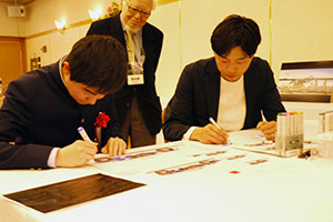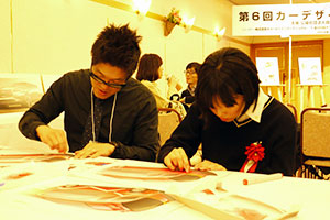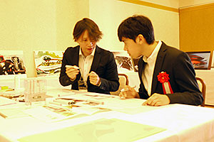 表彰式の後には、受賞した学生達を対象に自動車メーカー各社のデザイナーによるタブレット端末によるデモンストレーション、マンツーマンのスケッチ指導が行われました。