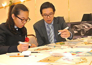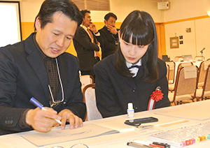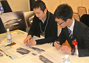 表彰式の後には、受賞した学生達を対象に自動車メーカー各社のデザイナーによるタブレット端末によるデモンストレーション、マンツーマンのスケッチ指導が行われました。
