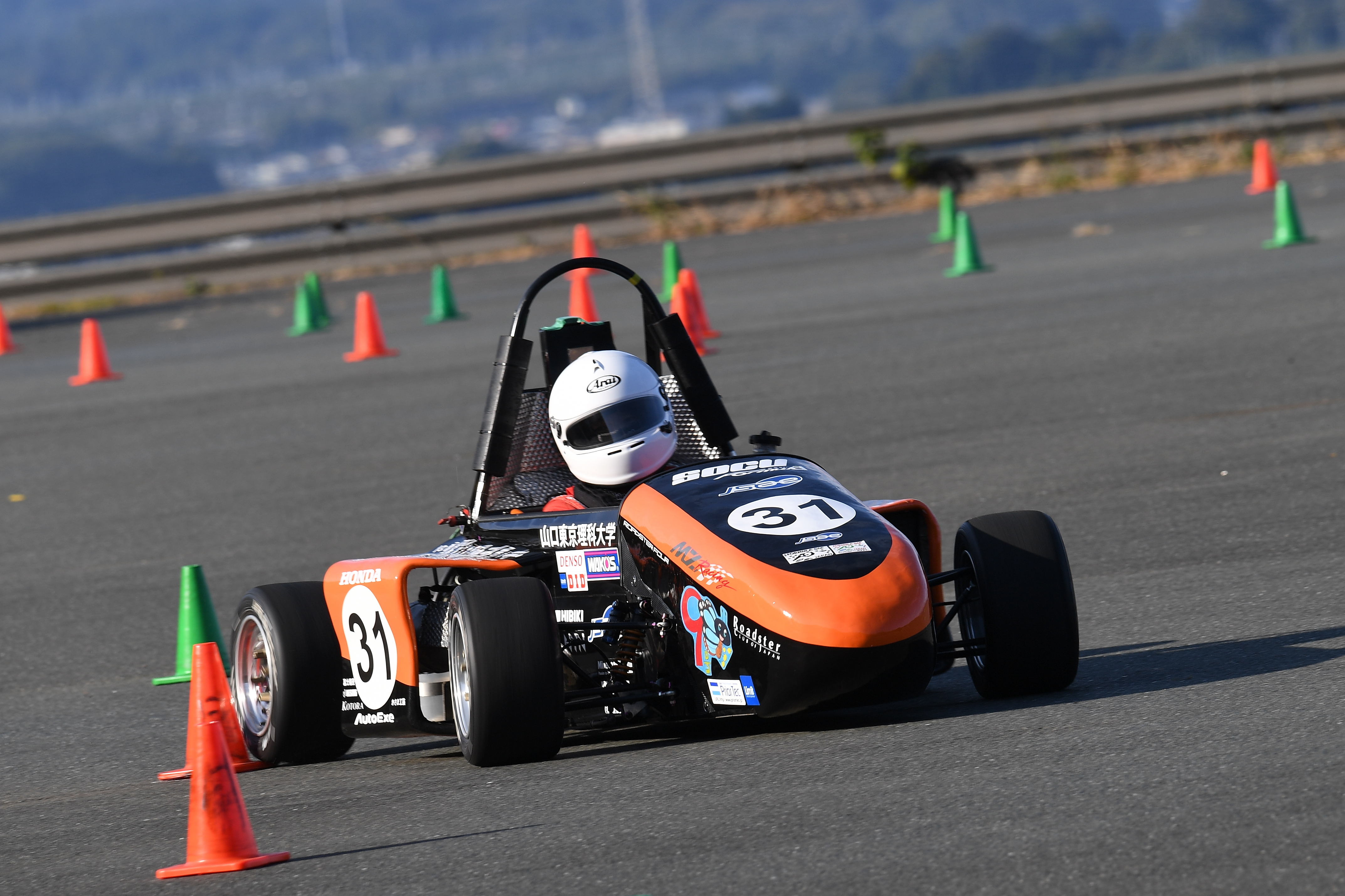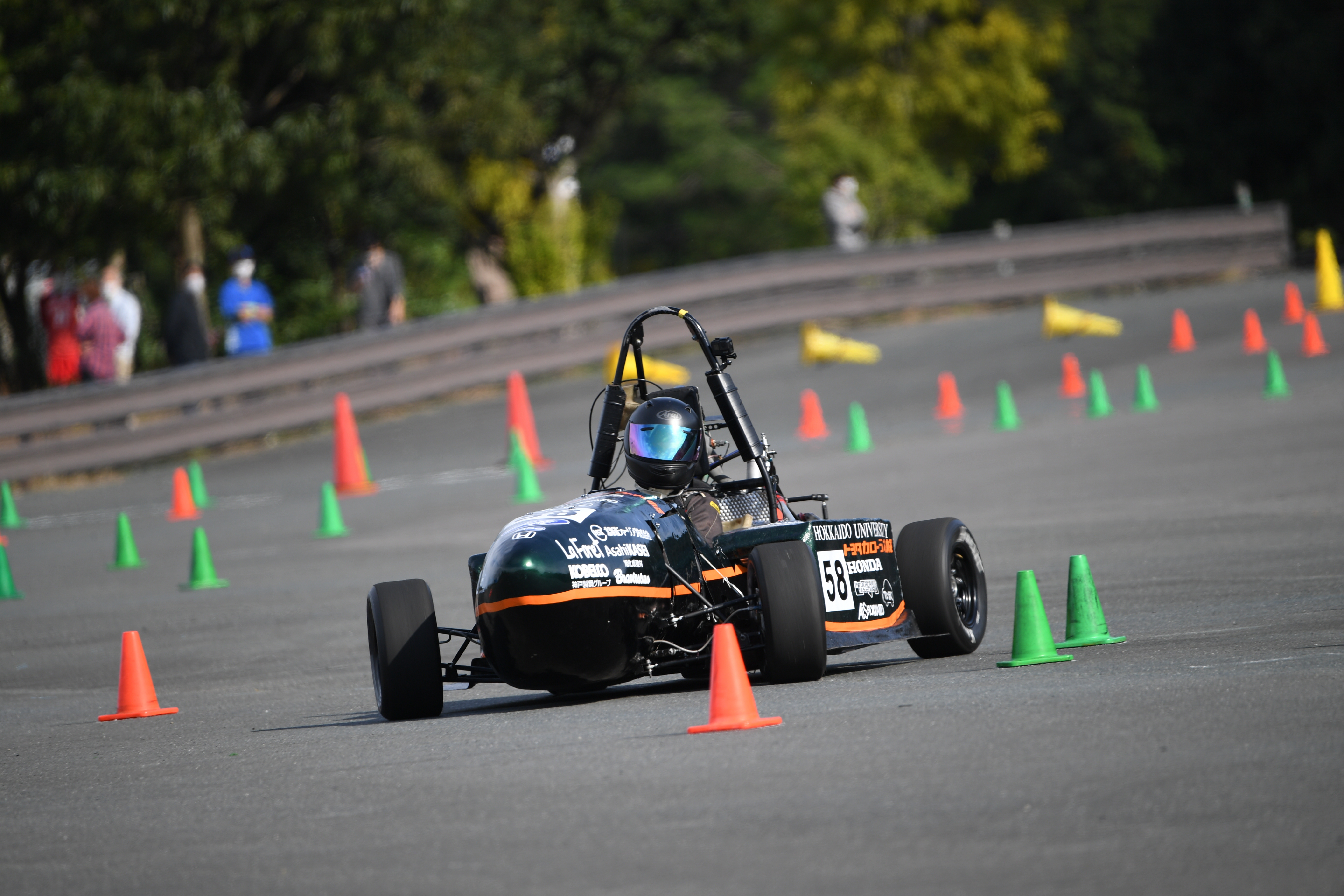 公式記録会では、計測を伴う動的審査(アクセラレーション、スキッドパッド、オートクロス、エンデュランス(燃費/電費))を実施し、一部審査は本大会よりも短縮して、どの審査もチーム判断での任意参加としました。走行前には、車両安全確認(技術車検とは異なる簡易なもの)を実施し安全面を担保して実施しました。