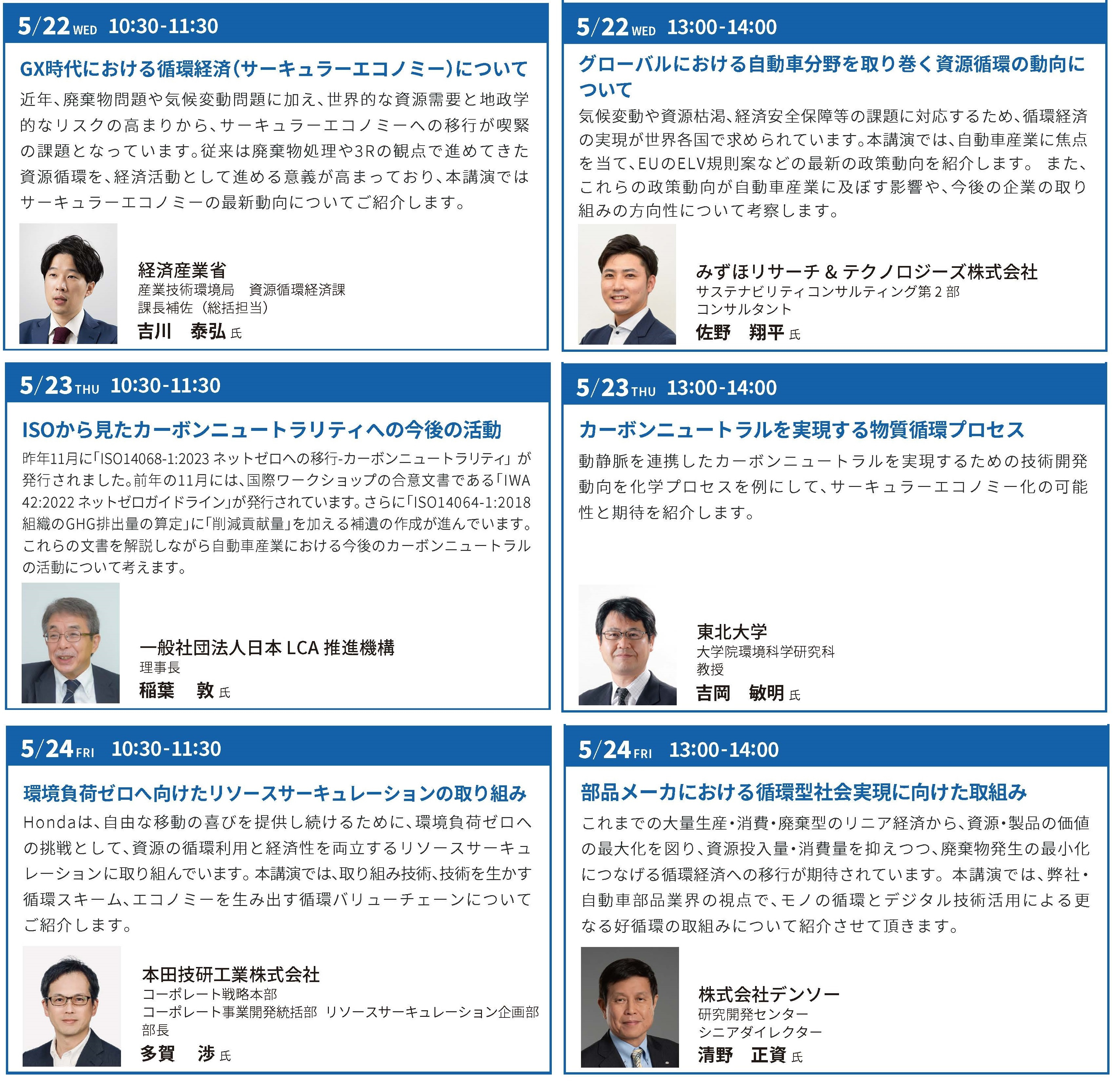 JSAE企画展示のテーマに沿った6講演を実施します。