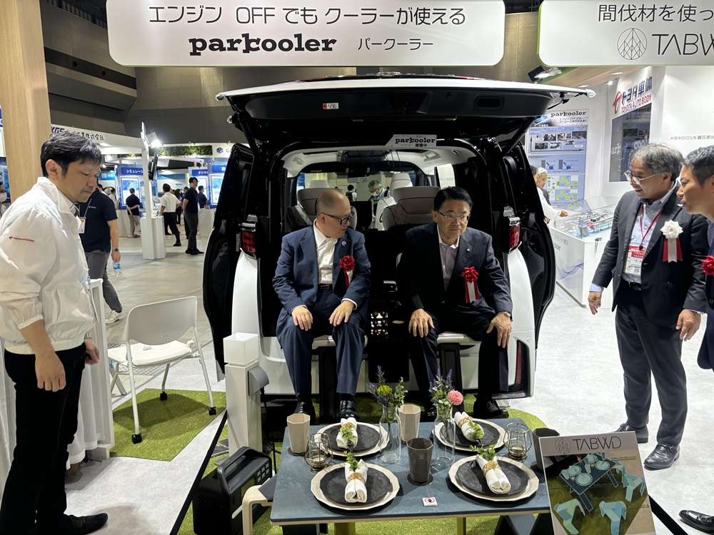 初日17日(水)にオープニングセレモニーを実施し、愛知県知事 大村秀章(おおむら・ひであき) 様、常滑市長 伊藤 辰矢 (いとう・たつや) 様、中部経済産業局 局長 寺村 英信 (てらむら ・ ひでのぶ) 様からご祝辞を賜った後に、テープカットのセレモニーを実施致し、その後会場を視察していただきました。