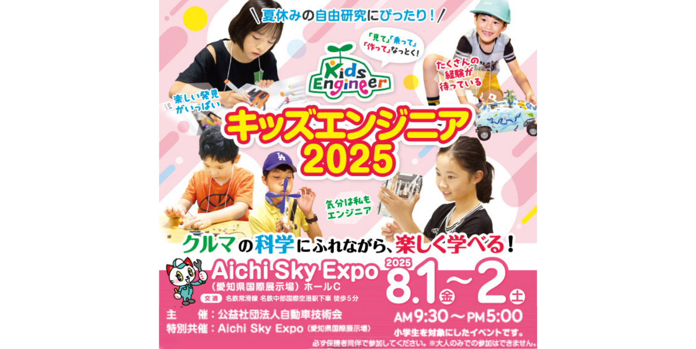 公益社団法人自動車技術会(会長 中畔 邦雄)は、2025年8月1日(金)~2日(土)の2日間にわたり、Aichi Sky Expo(愛知県国際展示場)にて、キッズエンジニア2025を開催します。