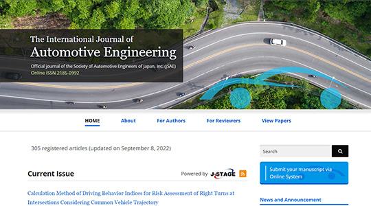 本会では、「自動車技術会論文集」(日本語)と「International Journal of Automotive Engineering(IJAE)」(英語)の2つの論文集を発行しています。